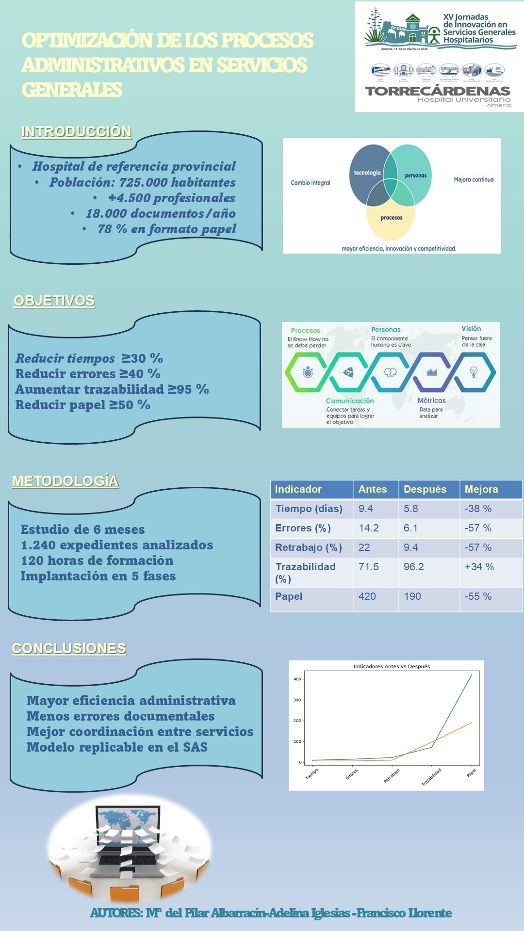 Usted va a votar como Mejor póster informativo: "Optimización de los Procesos Administrativos en Servicios Generales mediante Herramientas Digitales en un Hospital de Referencia Andaluz.".