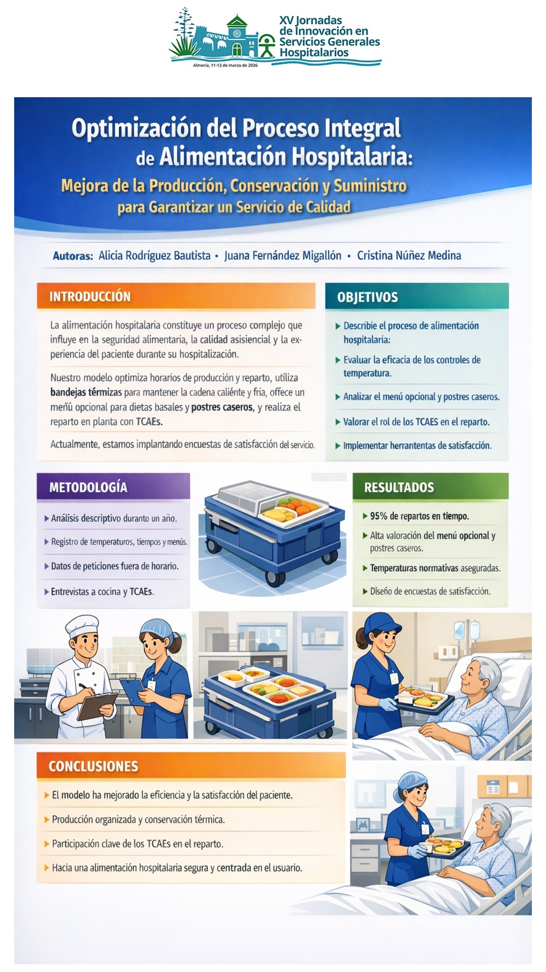 Usted va a votar como Mejor póster informativo: "Optimización del Proceso Integral de Alimentación Hospitalaria: Mejora de la Producción, Conservación y Suministro para Garantizar un Servicio de Calidad".