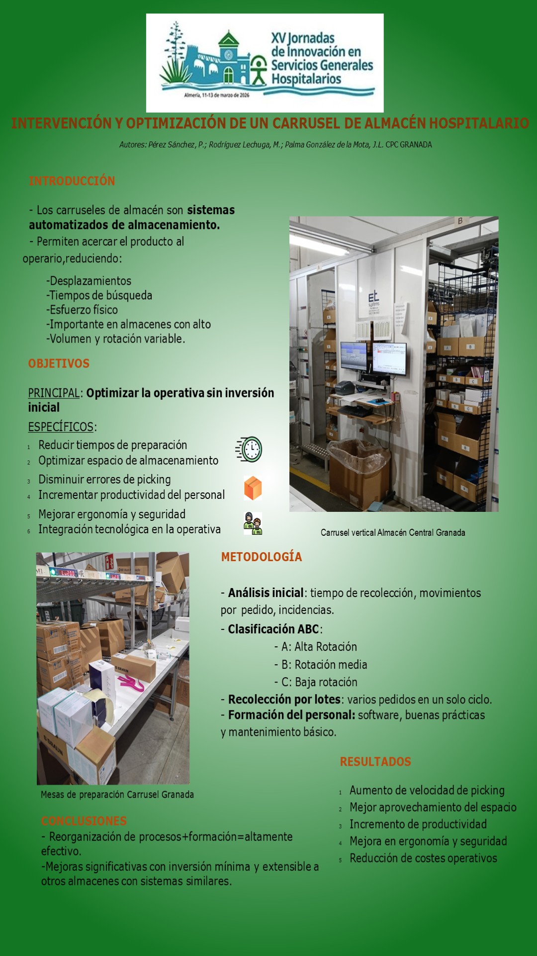 Usted va a votar como Mejor póster informativo: "INTERVENCIÓN Y OPTIMIZACIÓN DE UN CARRUSEL DE ALMACÉN HOSPITALARIO".